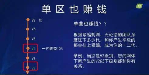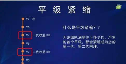 1·紧缩模式:无论团队有多深,只要有与自己同级别的成员,他们都会被视为自己的第一1·代下线,同样规则适用于第二代下线。例如,V7 级会员的直接推荐人是 V6 级,但团队深度出现新的 V7 级会员,新的 V7 级会员将成为其第一代下线。